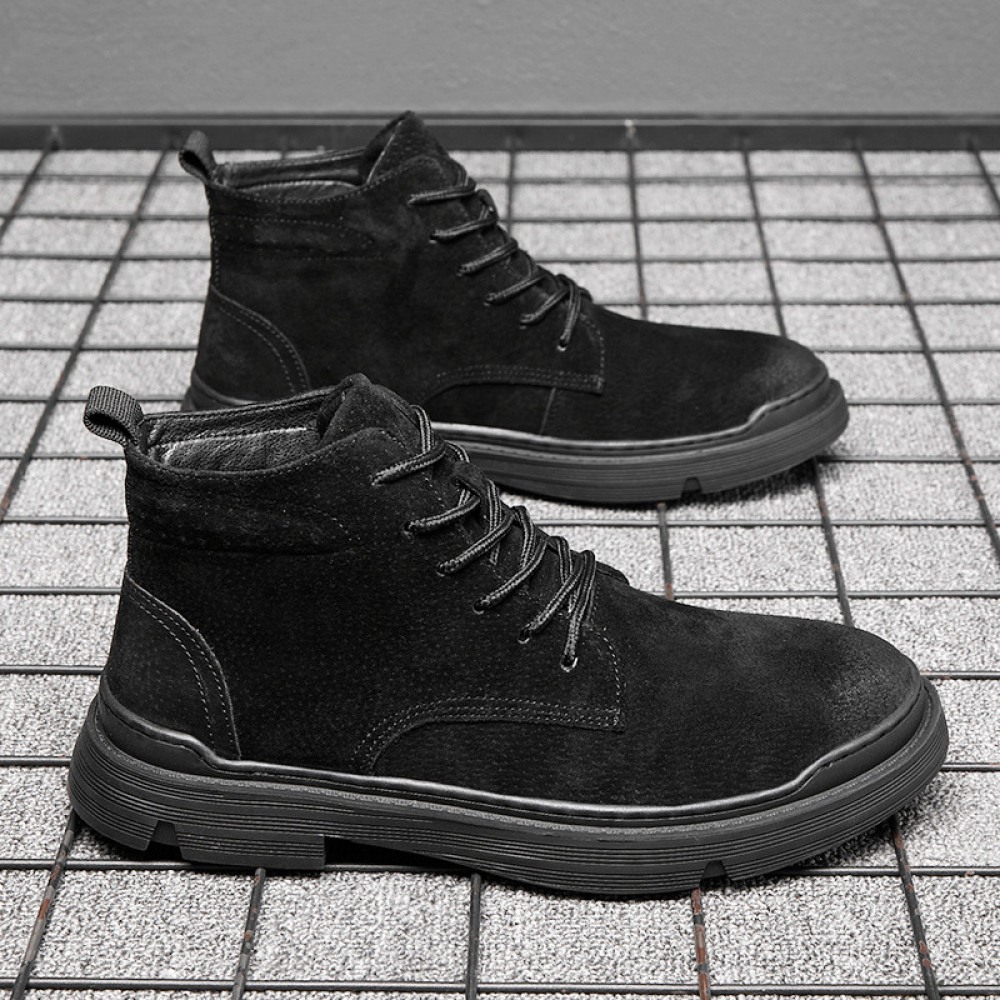 Men's Autumn and Winter New High-Top Cotton Shoes Leather Casual Short Martin Boots