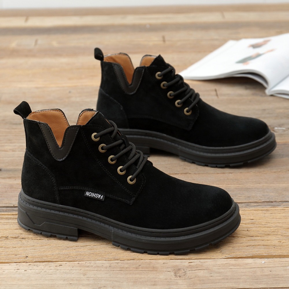 Men's Autumn and Winter New High-Top Cotton Shoes Leather Casual Short Martin Boots