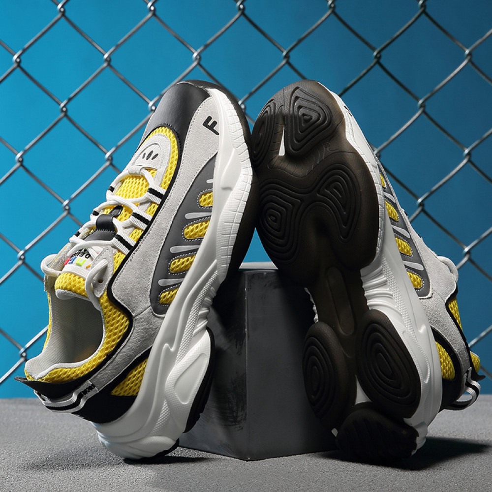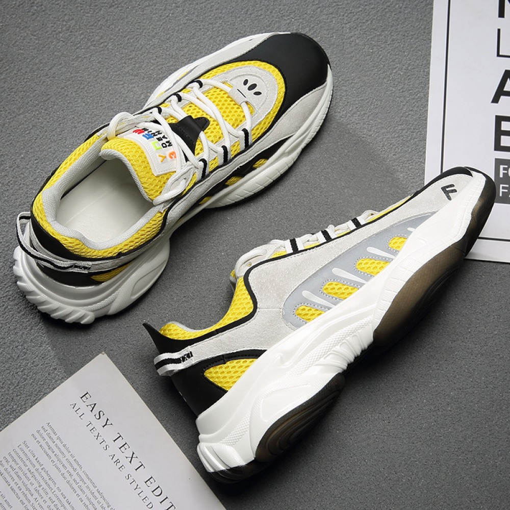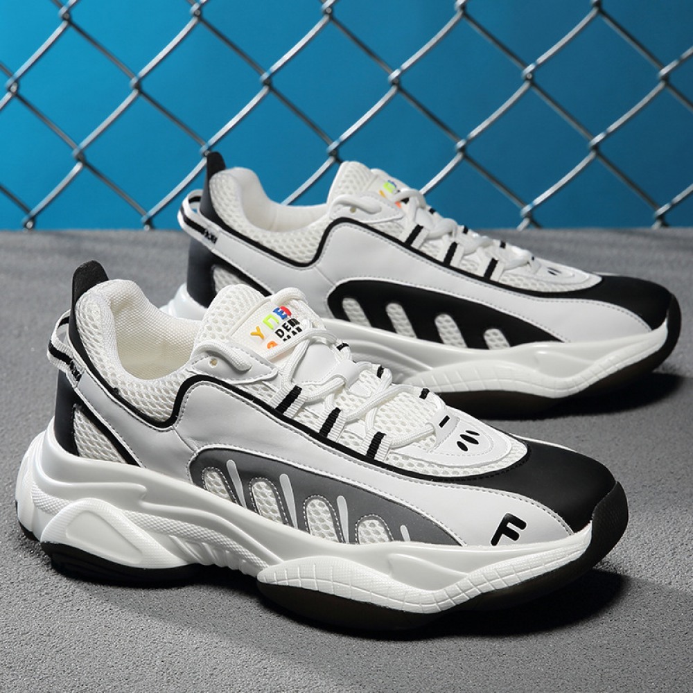 Summer New Trend Men's Mesh Breathable Thick-Soled Increased Sneakers Lace-Up Casual Shoes