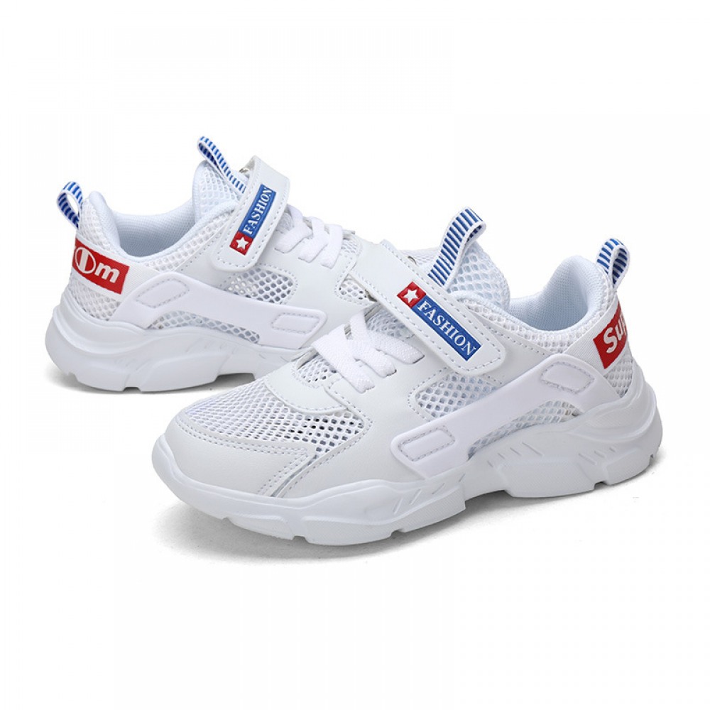 Children's White Spring New Breathable Mesh Mid-Large Casual Sports Shoes