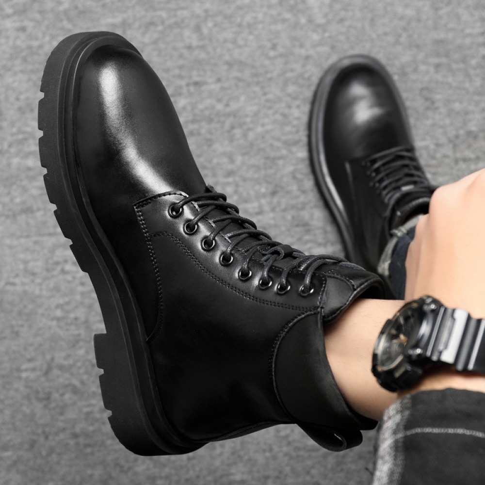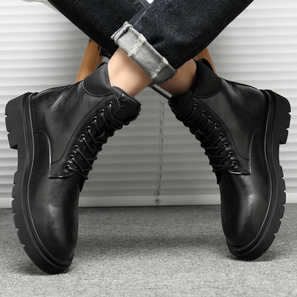 Men's Autumn New Fashion Casual Add Velvet Warm Leather High-Top Martin Boots