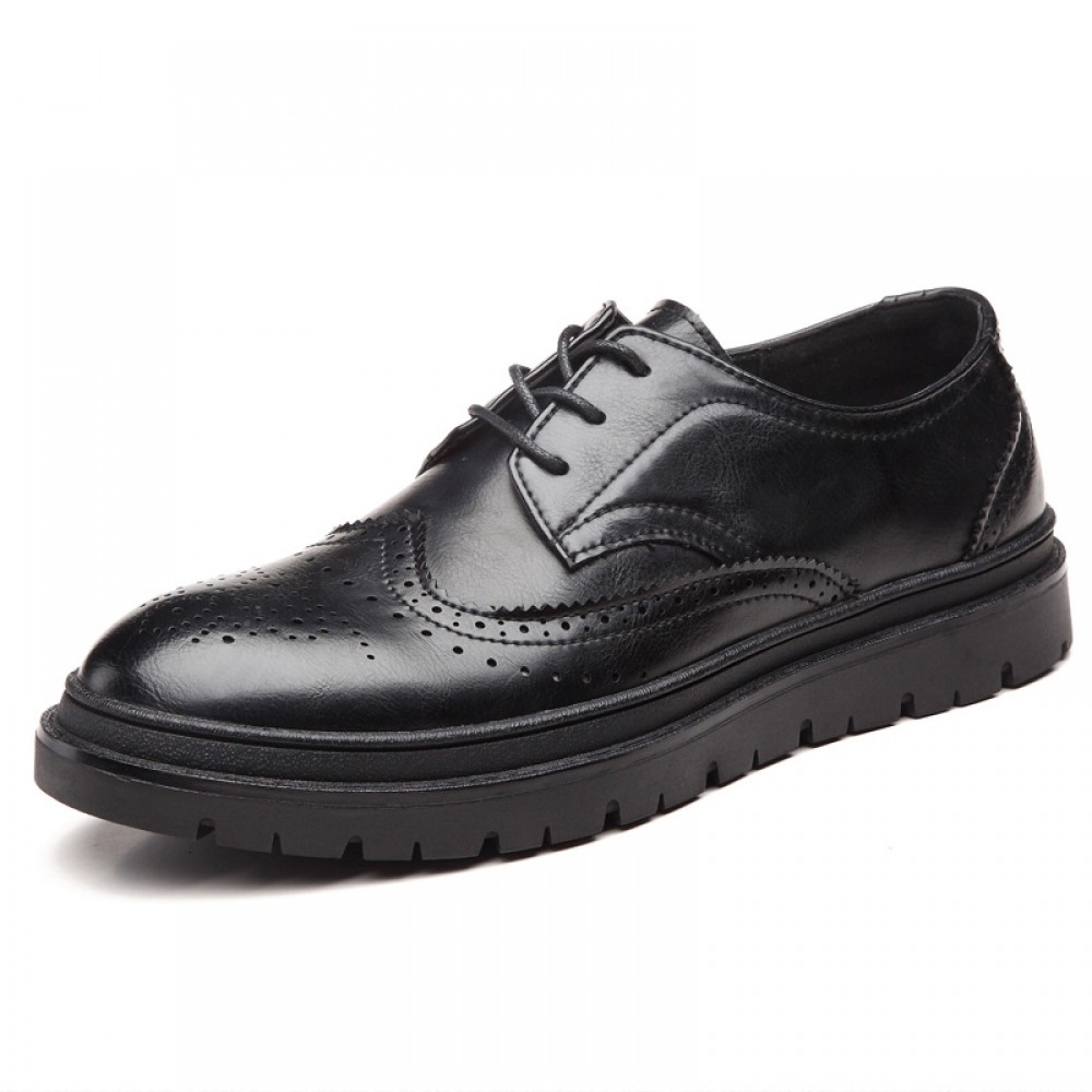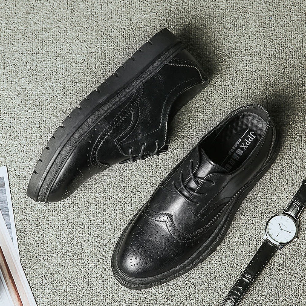 New Men's Casual Leather Shoe Round Toe Lace-Up Breathable Trend Shoes