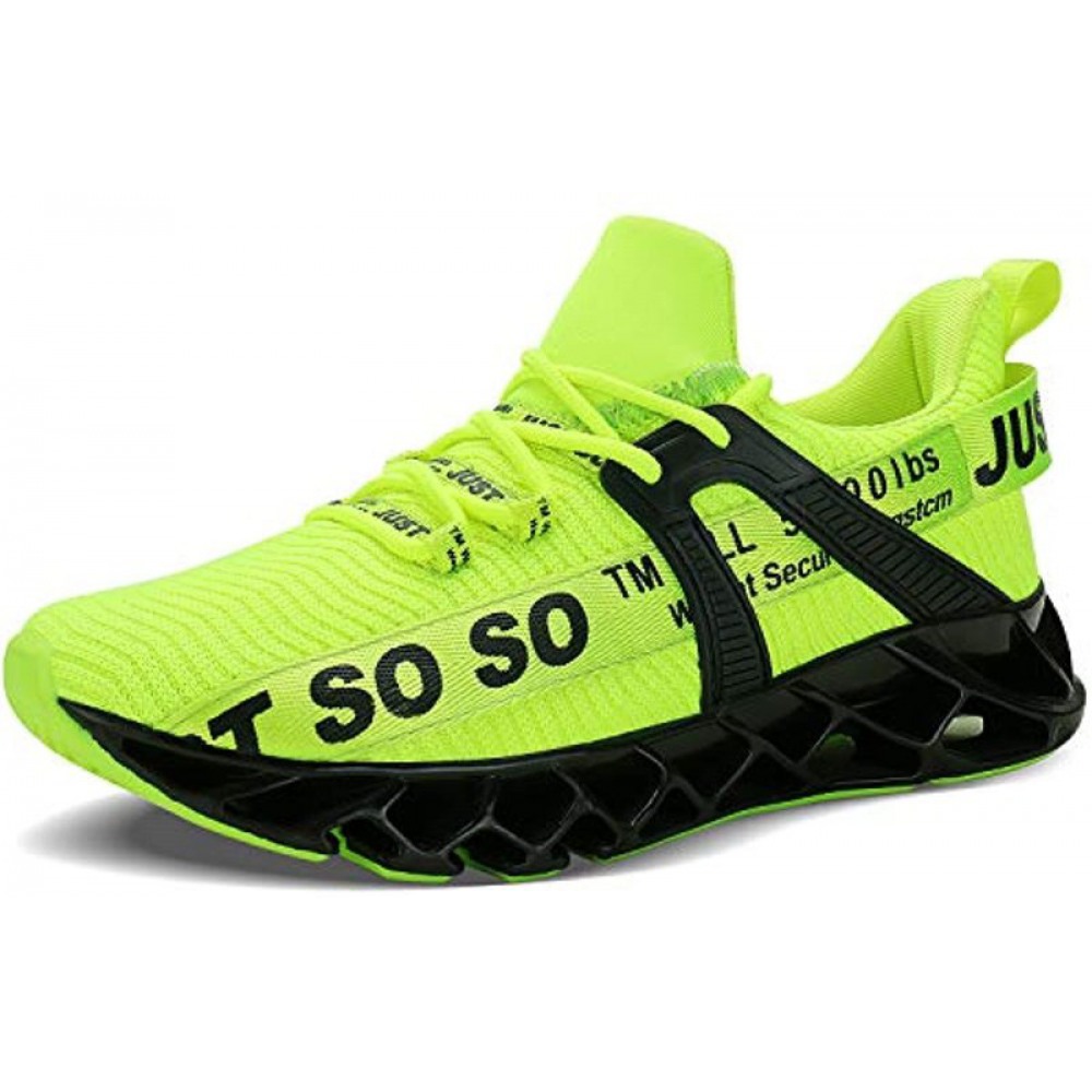 Men's Runing Shoes Walking Non Slip Blade Type Sneakers Black Green
